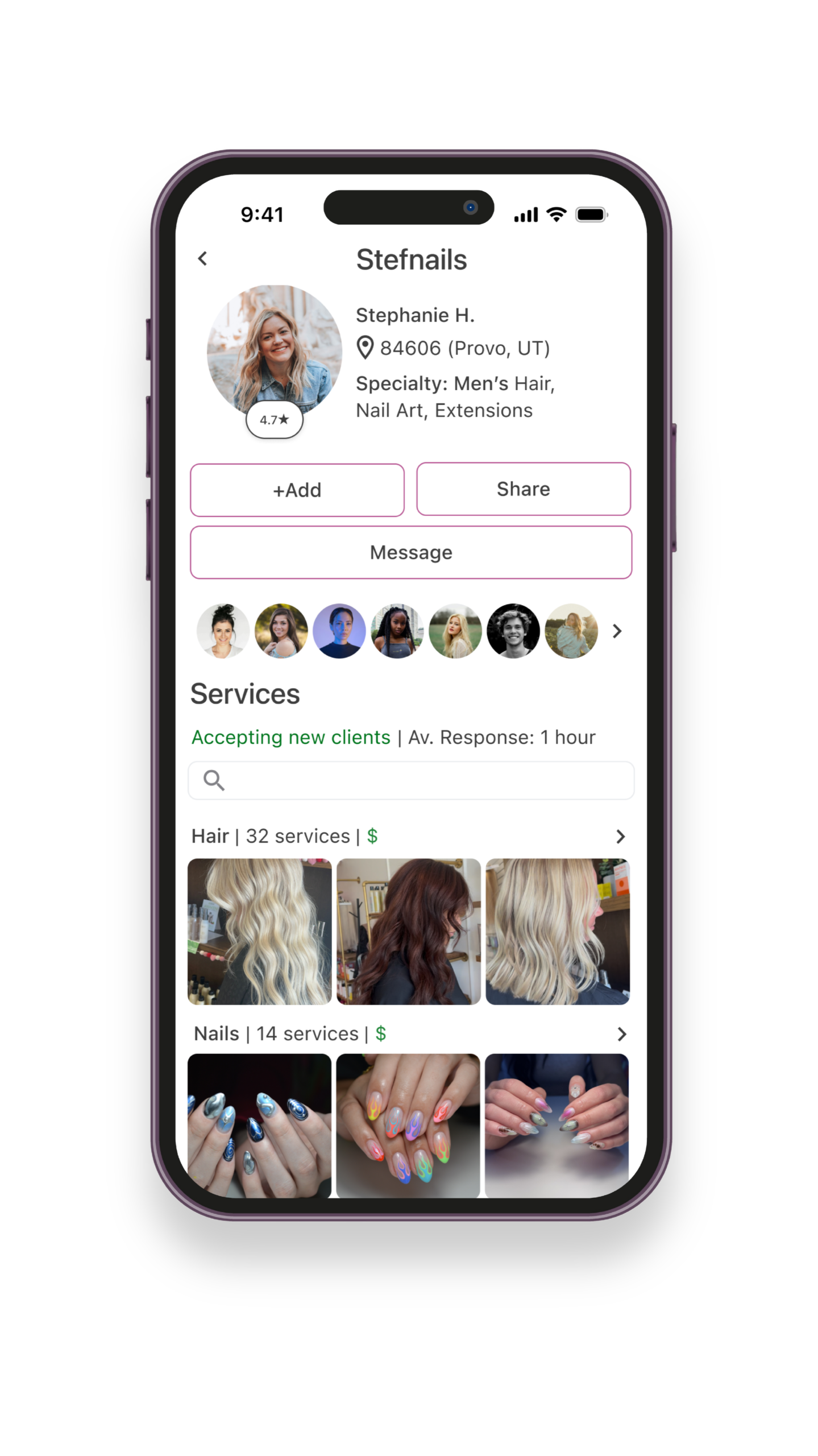 "I love that I no longer have to search to find someone that fits me! Not only does it help me find a stylist or nail tech, but this app gives me an easy way to look for inspiration!"